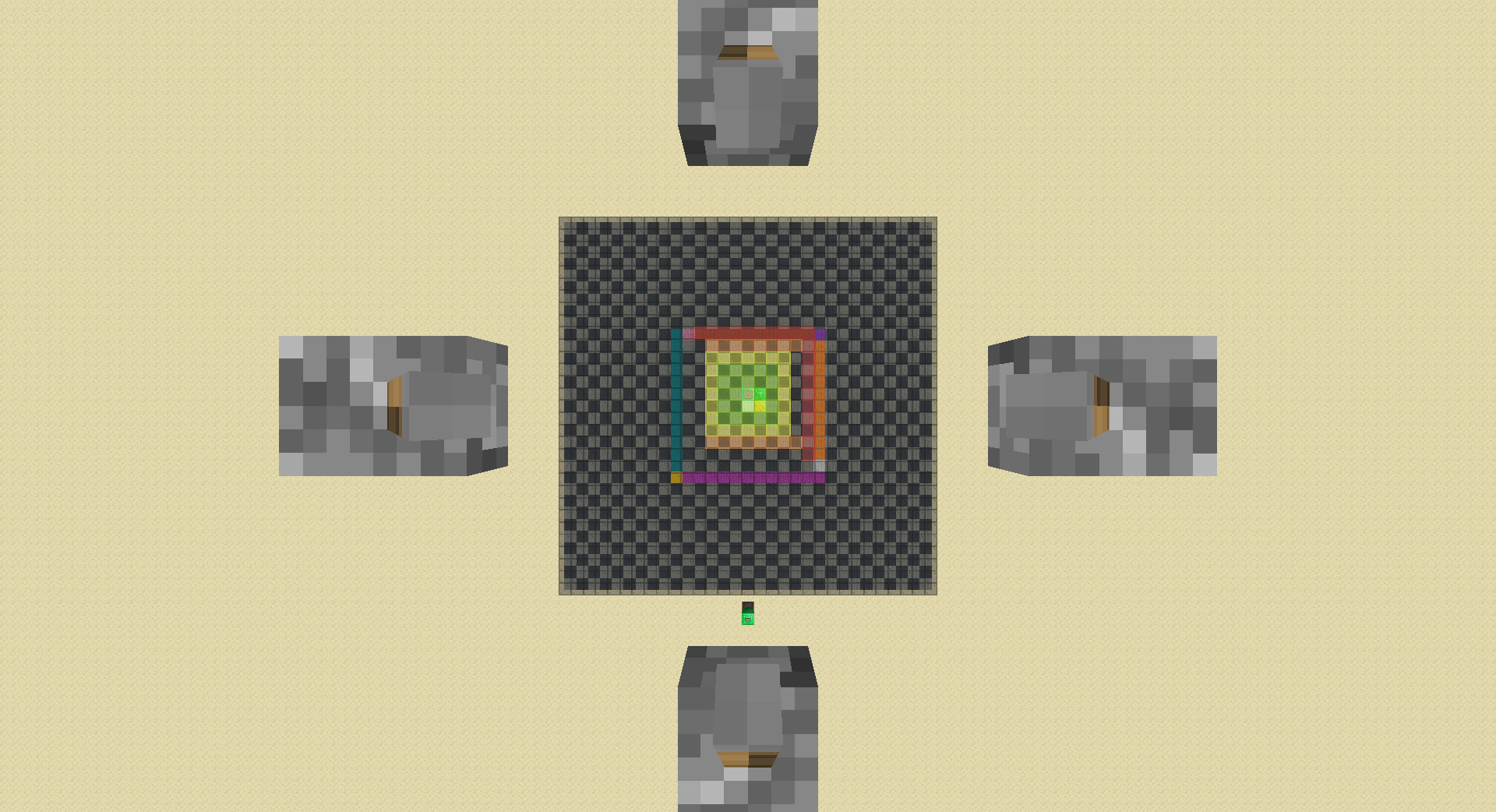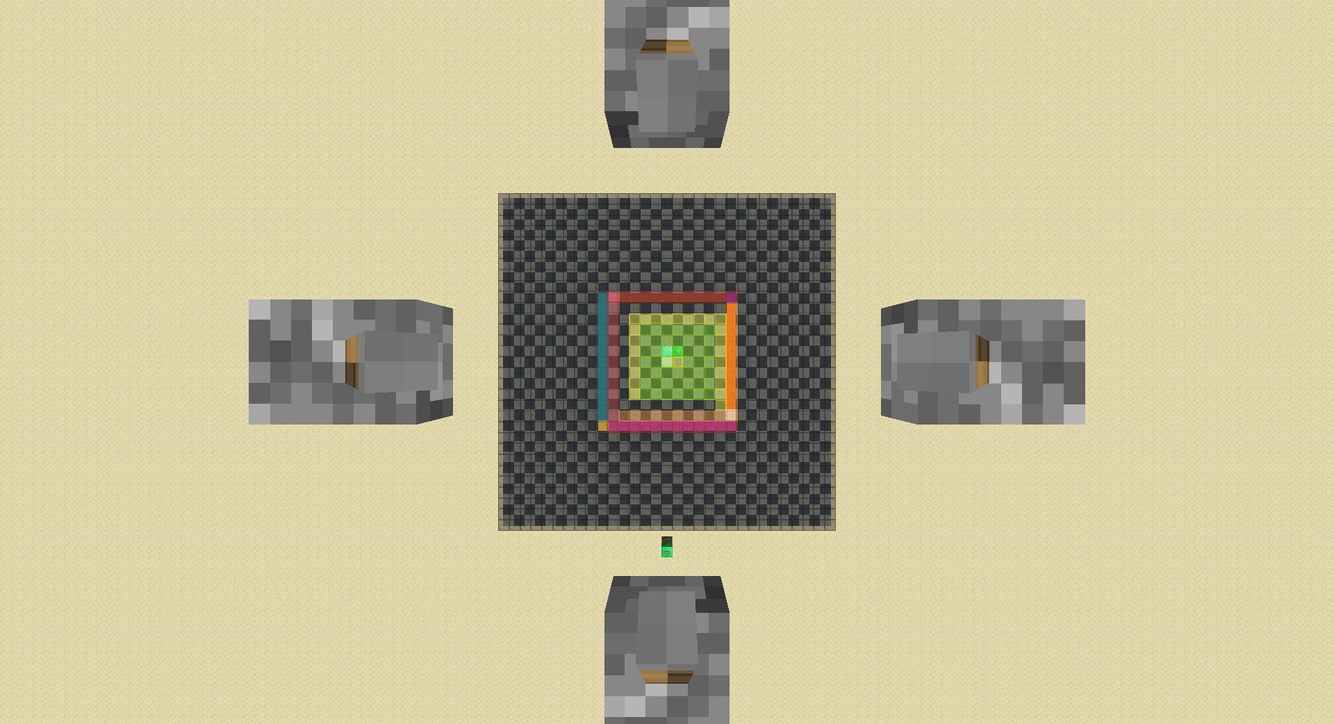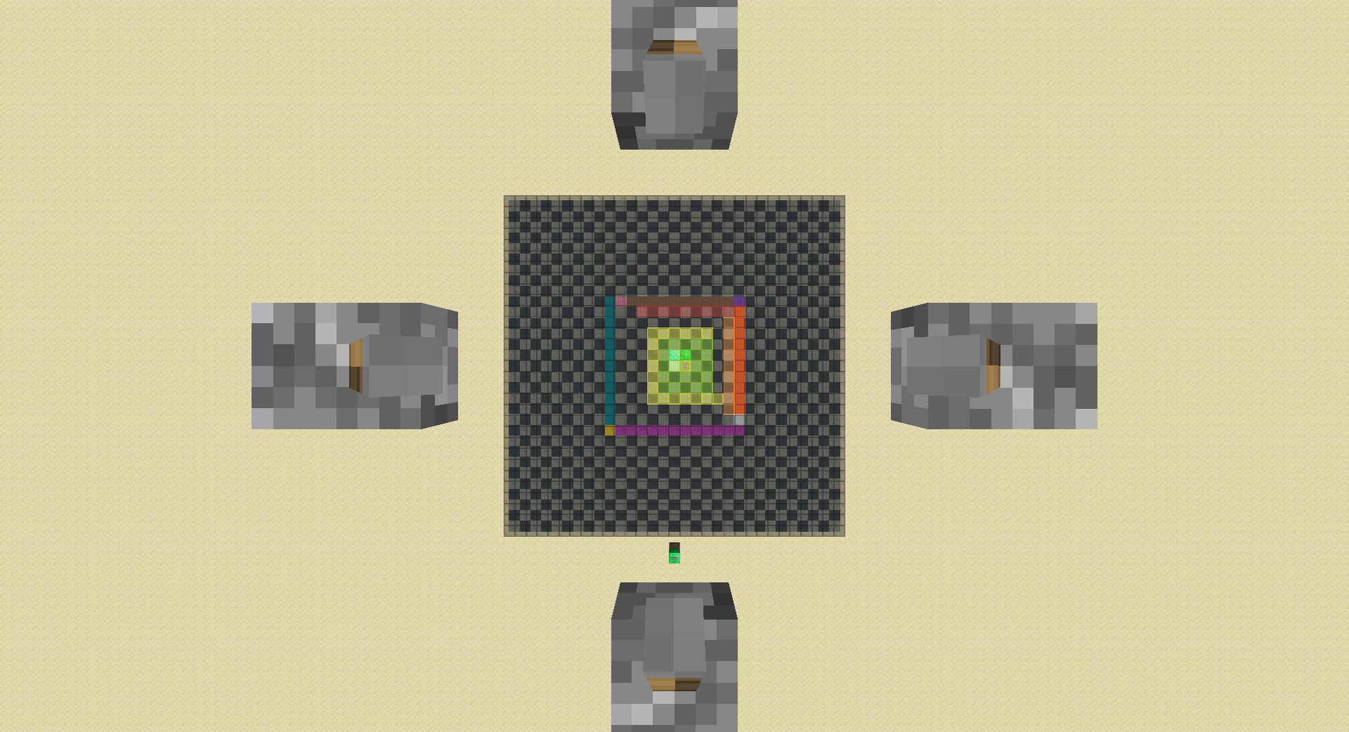 There are coloured wool placed around the map at corresponding chunks of the example shown below for verifying cases. To verify a case, place a spawner on top of a wool block and break all other spawners, do the same actions both with the levers and yourself, and see if a spawner is on pie when the map shows a chunk have (red,orange,yellow and lime) stained glass above.