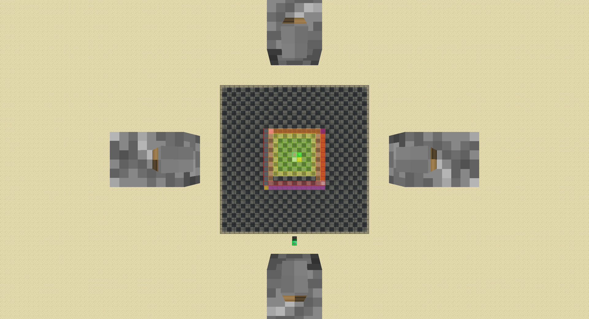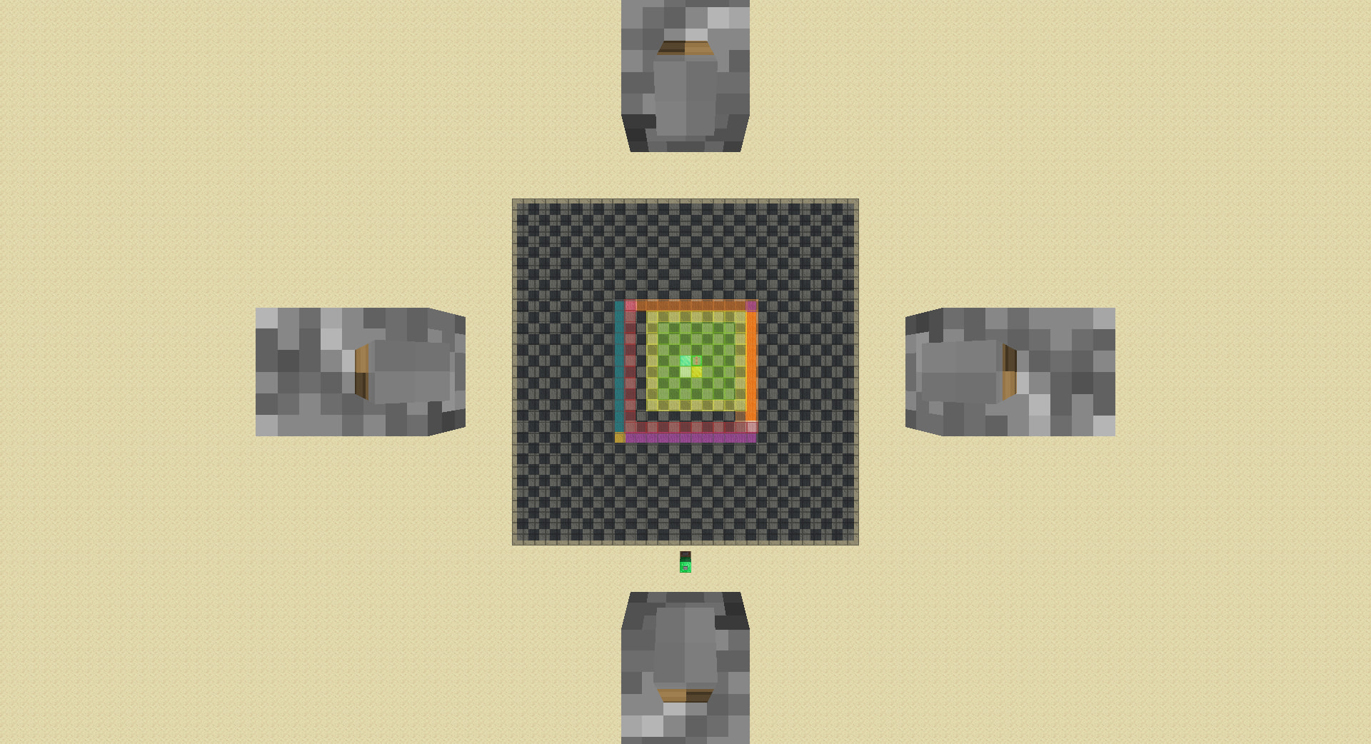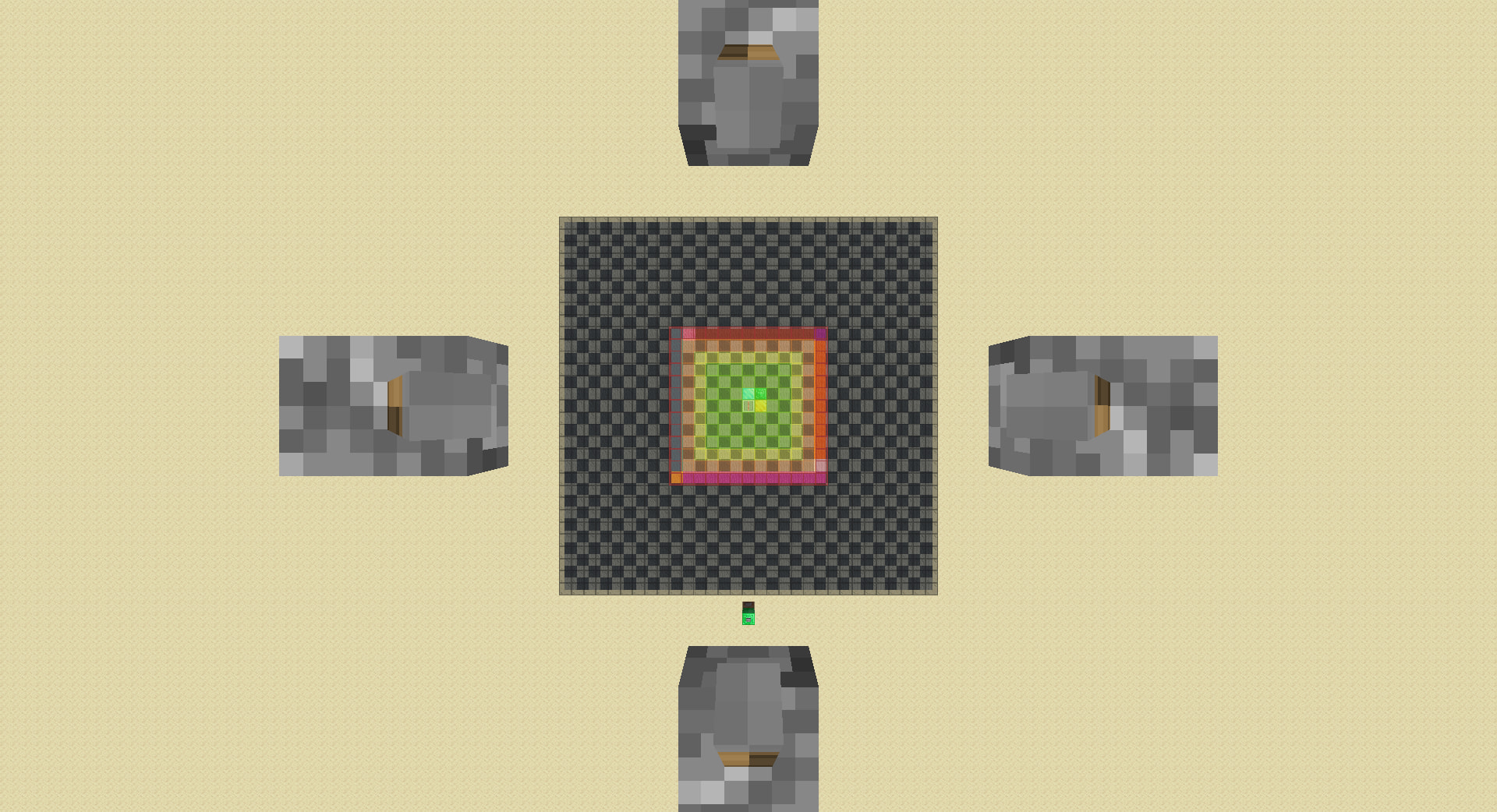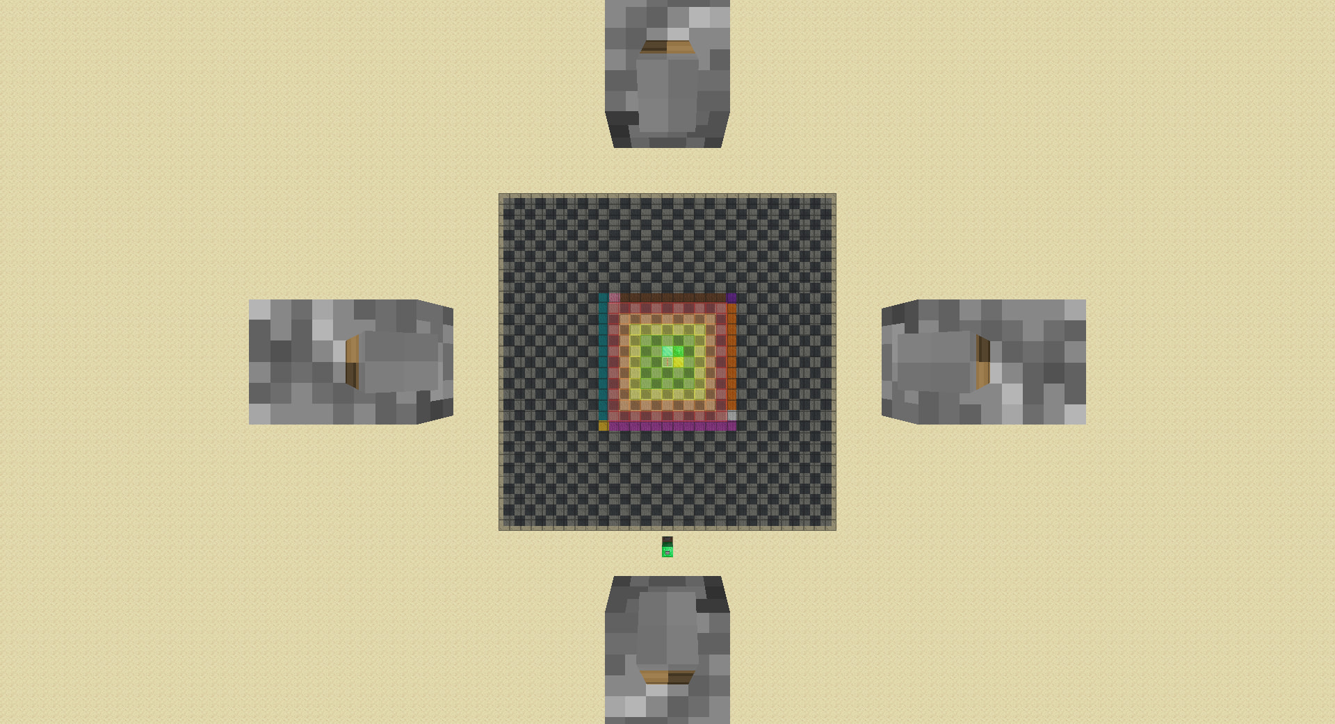 There are coloured wool placed around the map at corresponding chunks of the example shown below for verifying cases. To verify a case, place a spawner on top of a wool block and break all other spawners, do the same actions both with the levers and yourself, and see if a spawner is on pie when the map shows a chunk have (red,orange,yellow and lime) stained glass above.