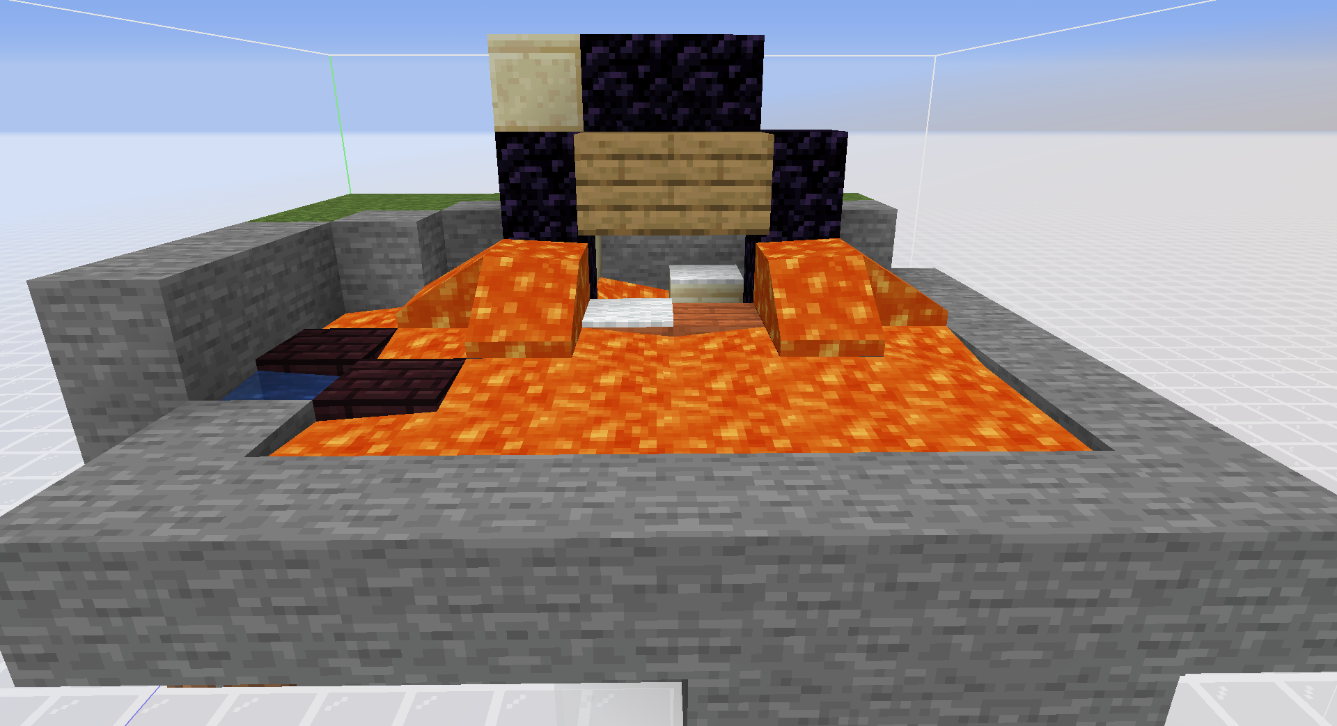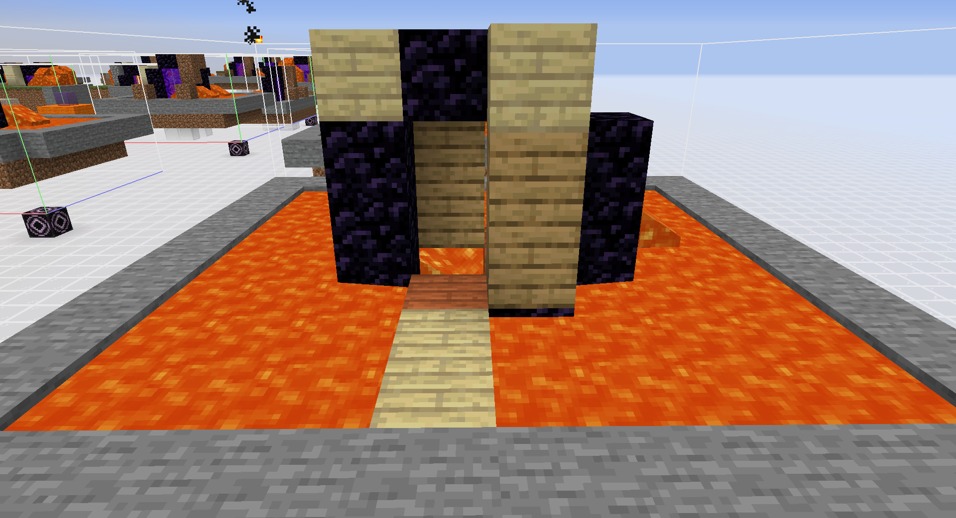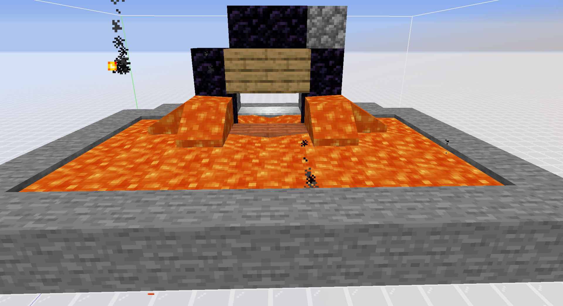 Note that the air blocks that can be lit on fire here is actually the same blocks that can be lit on fire in the first iteration in popping. This means that for both of these two ways that fire generates from lava, the air block that gets lit on fire are either in the 3x3 1 block above or the 5x5 2 blocks above the lava random ticked, and not at any other level, including the same level as the lava block or anything below. This is partially why pouring lava from the top of the portal turns out to be so inefficient, the lava on top is not really doing anything.