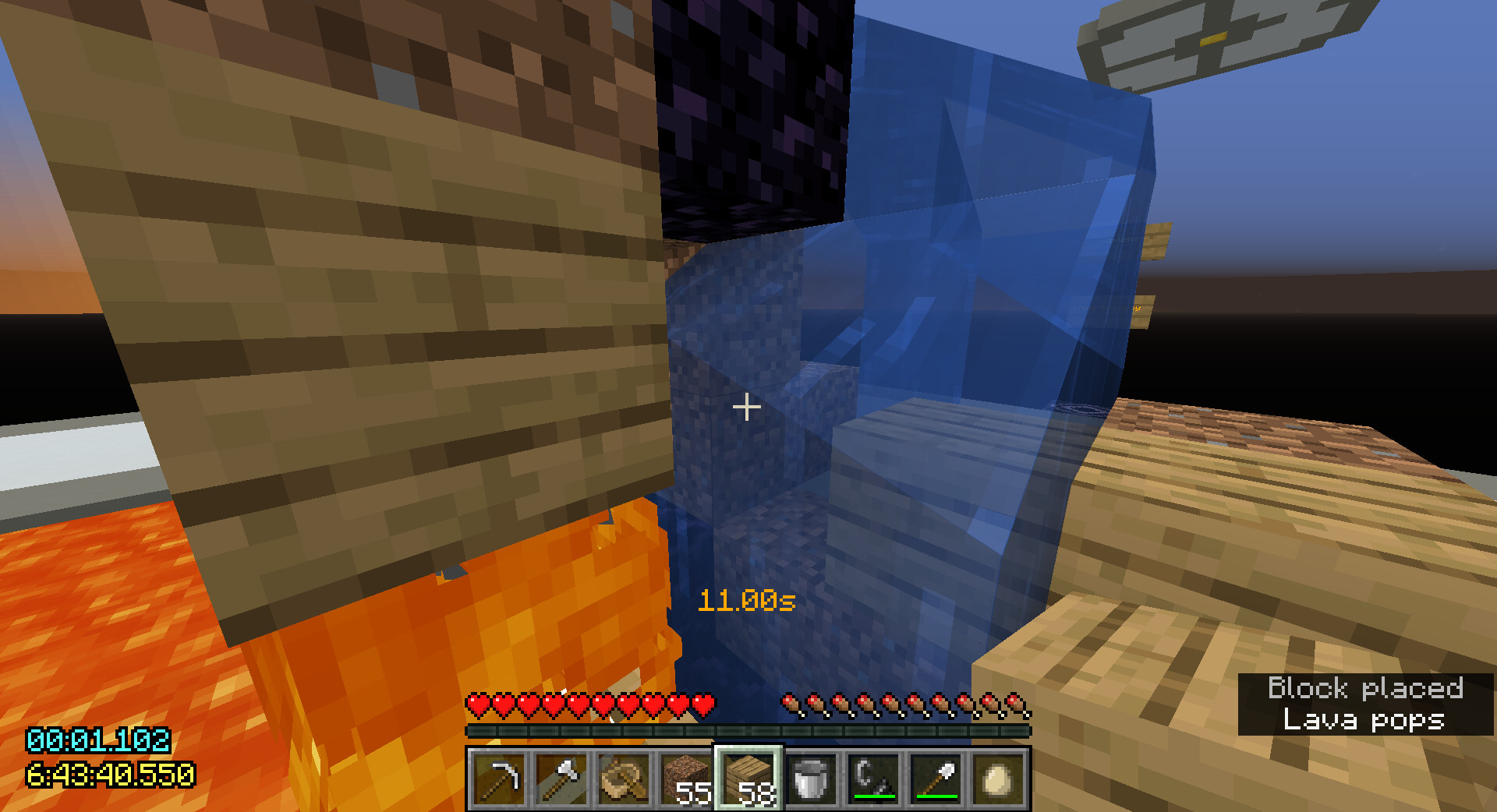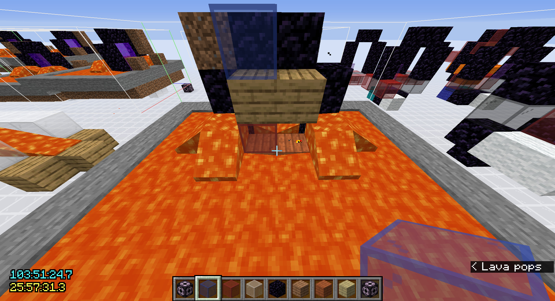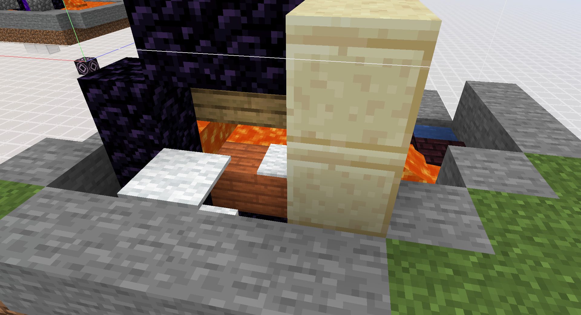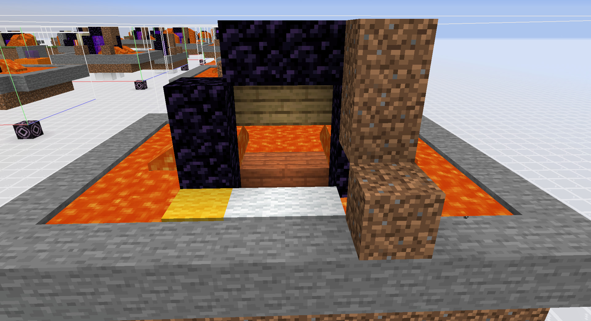 Note that the air blocks that can be lit on fire here is actually the same blocks that can be lit on fire in the first iteration in popping. This means that for both of these two ways that fire generates from lava, the air block that gets lit on fire are either in the 3x3 1 block above or the 5x5 2 blocks above the lava random ticked, and not at any other level, including the same level as the lava block or anything below. This is partially why pouring lava from the top of the portal turns out to be so inefficient, the lava on top is not really doing anything.