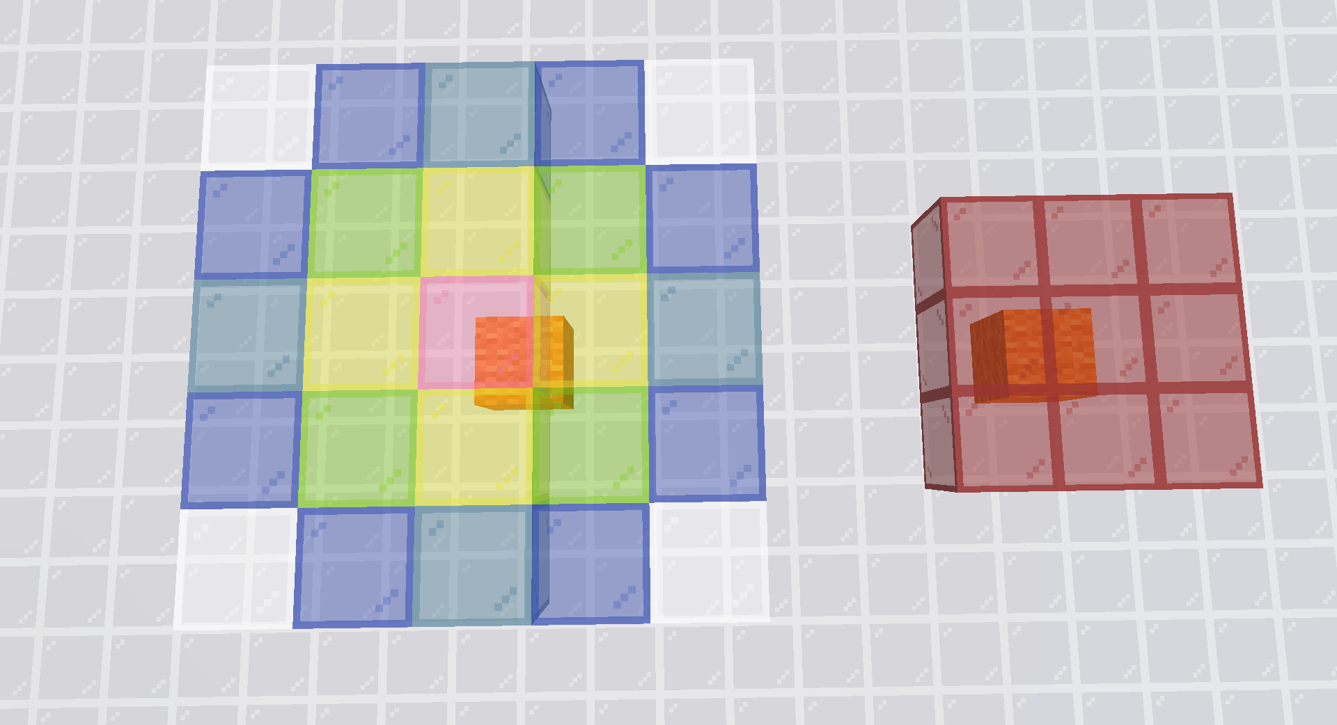You can see despite only happening \frac{1}{3} of the time, it tries to generate fire 3 times, making this actually a slightly more effective way of fire generation. In each attempt, the game chooses a uniformly random block in the 3x3 region at the same level of the lava block(the block chosen can be the lava itself, in which case the attempt is wasted). Then it checks if the block chosen is flammable(can catch fire from lava), and has air on top. If yes, then the air on top of the chosen block is lit on fire.